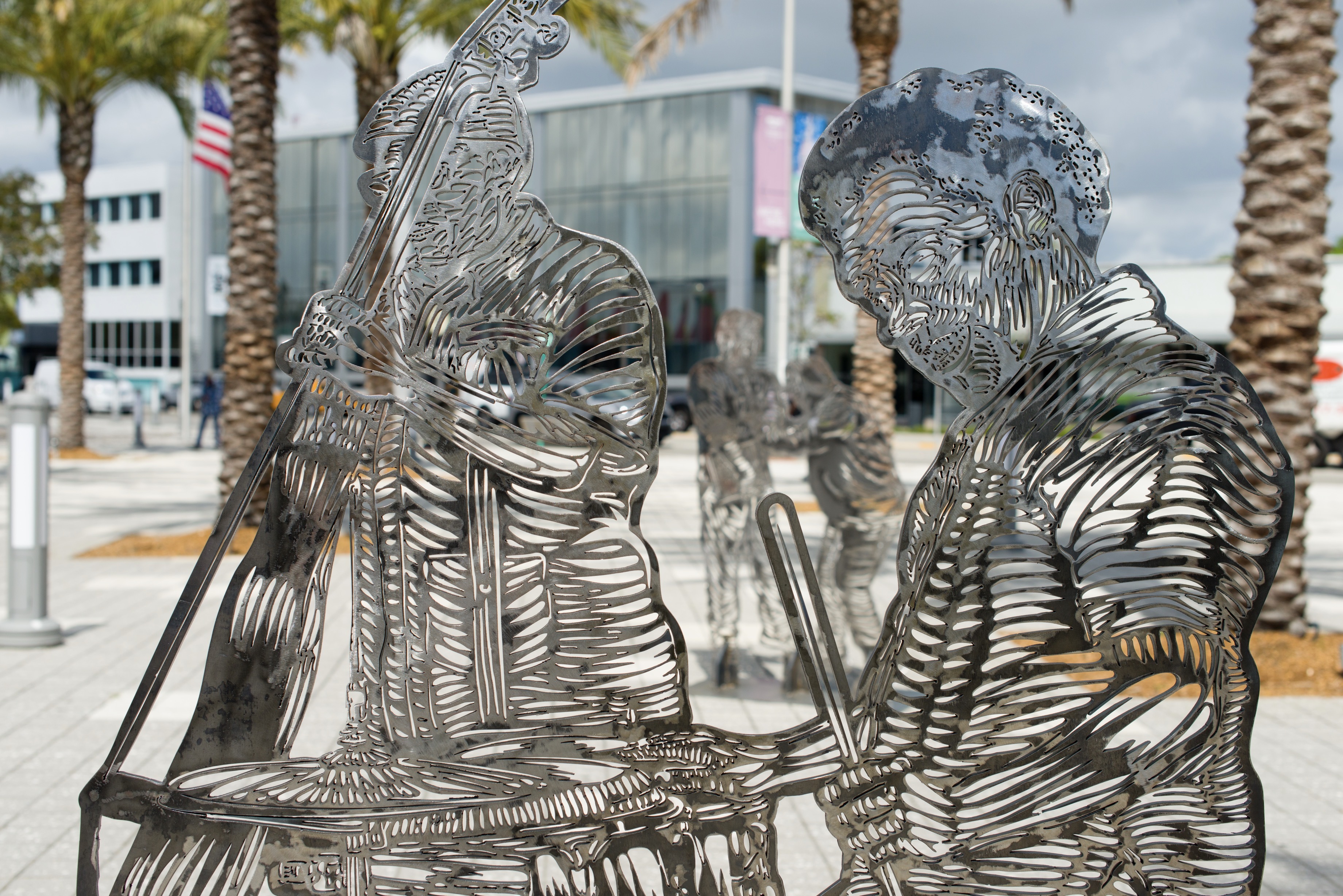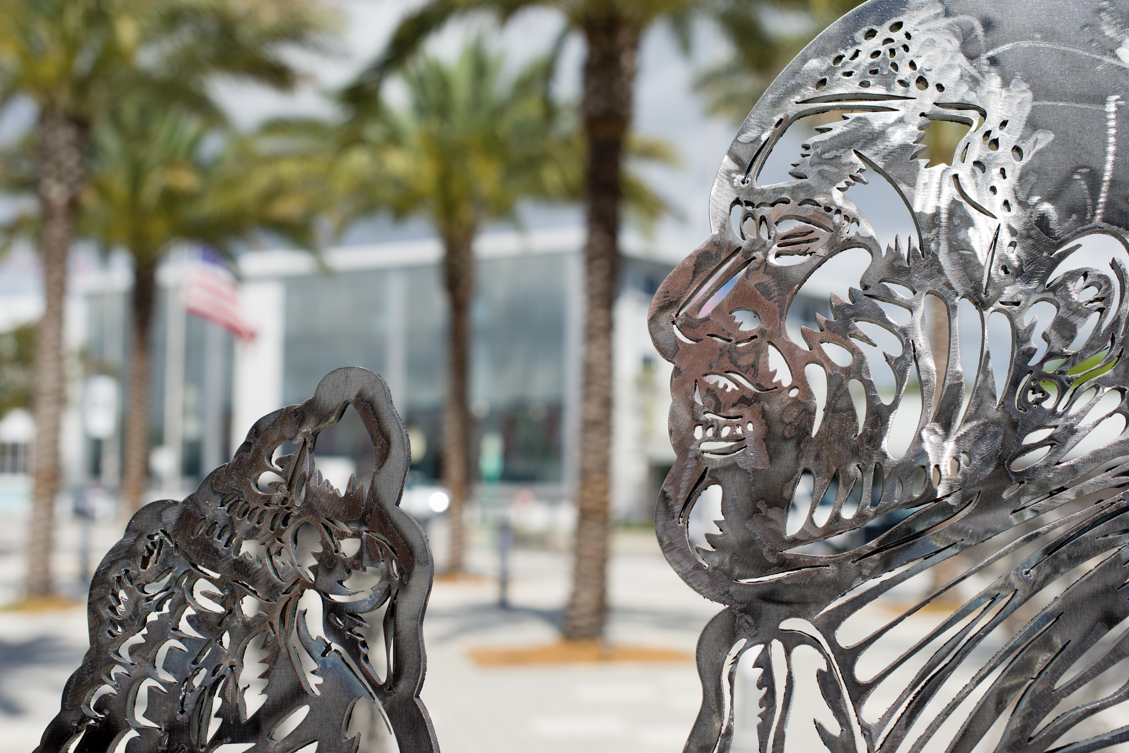 Bailando Nuestros Problemas by Joan Jiménez “Entes” draws inspiration from the everyday life of Miami’s Little Havana community. The installation reflects the ways people gather—through conversation, dance, and shared stories—to build and sustain cultural life. Cut in iron as a tribute to Shango of the Yoruba pantheon, a figure closely tied to the spiritual and cultural heritage of the African diaspora in Latin America, the work transforms memory into a series of sculptural altars.